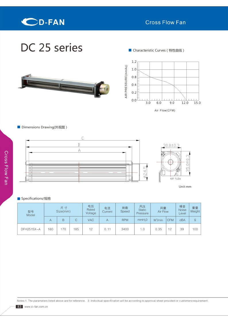 DC FAN橫流風(fēng)扇025規(guī)格